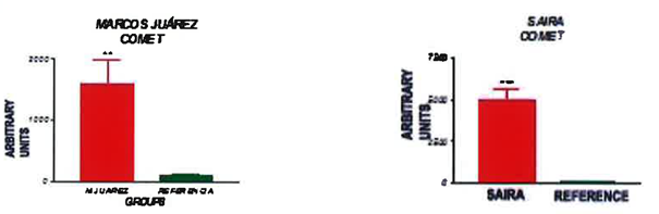 Graphique n° 7 : génotoxicité chez Marcos Juarez et Saira en rouge (Dr. Aiassa 2010)