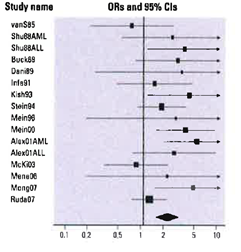 Graphique n°11 : Méta-analyse de la leucémie infantile en relation avec l’exposition professionnelle des mères enceintes aux pesticides26
