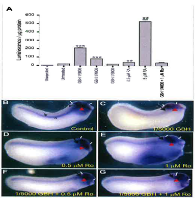 En mesurant l’activité de certains systèmes enzymatiques, on a découvert que le Glyphosate augmente l’activité endogène de l’acide rétinoïque. La manifestation des dommages structurels dans les embryons a été inversée lorsque l’herbicide a été utilisé simultanément avec un antagoniste de l’acide rétinoïque (voir image n° 5).